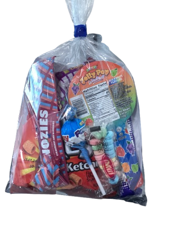 Includes: Noshkes Bissli 30g, Jelly Pop Windmill, Chewzy Whimsies, Fantasy Lollipops, Taaman Candy Bracelet, Chewzy Twozies 20g.