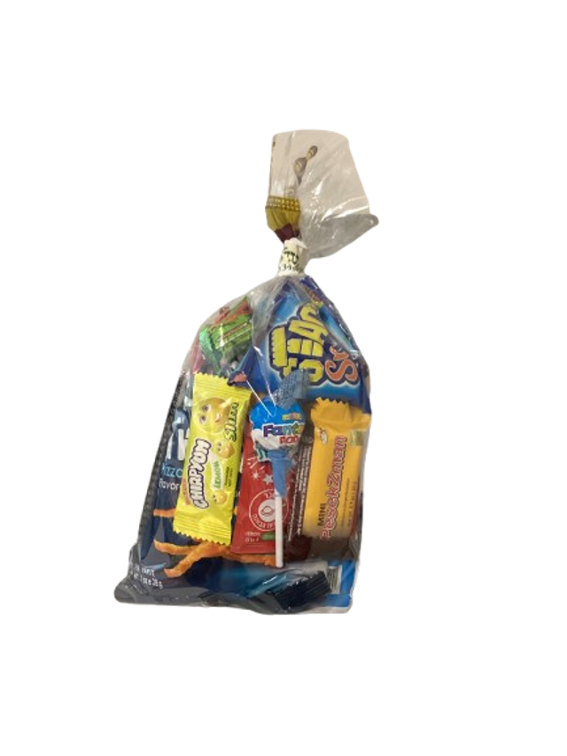 Includes: Paskesz Twiggs 28g, Crunchi Bissli 20g, Tropikash Drink, Paskesz Clik Clak, Yumdrum Chirpyum, Fatasy Lollipop, Mini Pesek Zman, Atomic Toffee, Liklukim Popping Candy